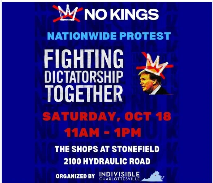 As part of the No Kings 2.0 Rally on October 18 from 11am-1pm, we will be doing 5 5-minute movement breaks every 20 minutes on the sidewalks around the Stonefield Shops. We'll be set up behind Trader Joe's on the corner of Hydraulic & 29. Look for the banner: If We Wanna Be Free, We Gotta Be Brave!